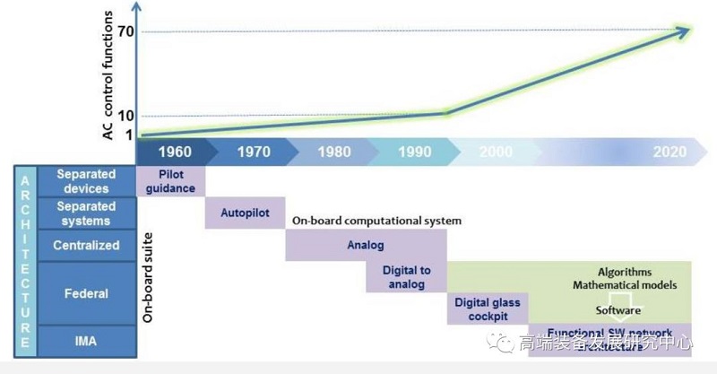 典型的Federated架构(A340飞行控制系统架构)与IMA-1G架构(图片来源Onera)