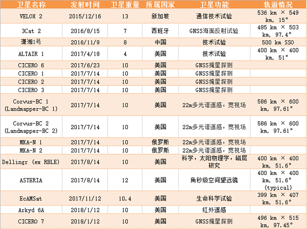 表1:2015年至今全球发射的6U立方体卫星一览表