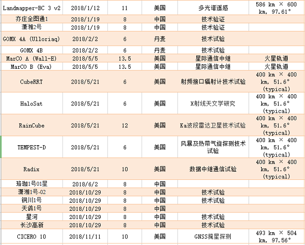以下卫星值得我们进行关注,包括:CICERO卫星星座,MarCO火星通信中继卫星,Landmapper-BC多光谱宽视场遥感卫星,Arkyd 6A红外遥感卫星,HaloSat X射线天文卫星,RainCube Ka波段雷达技术试验卫星,ASTERIA空间望远镜卫星。