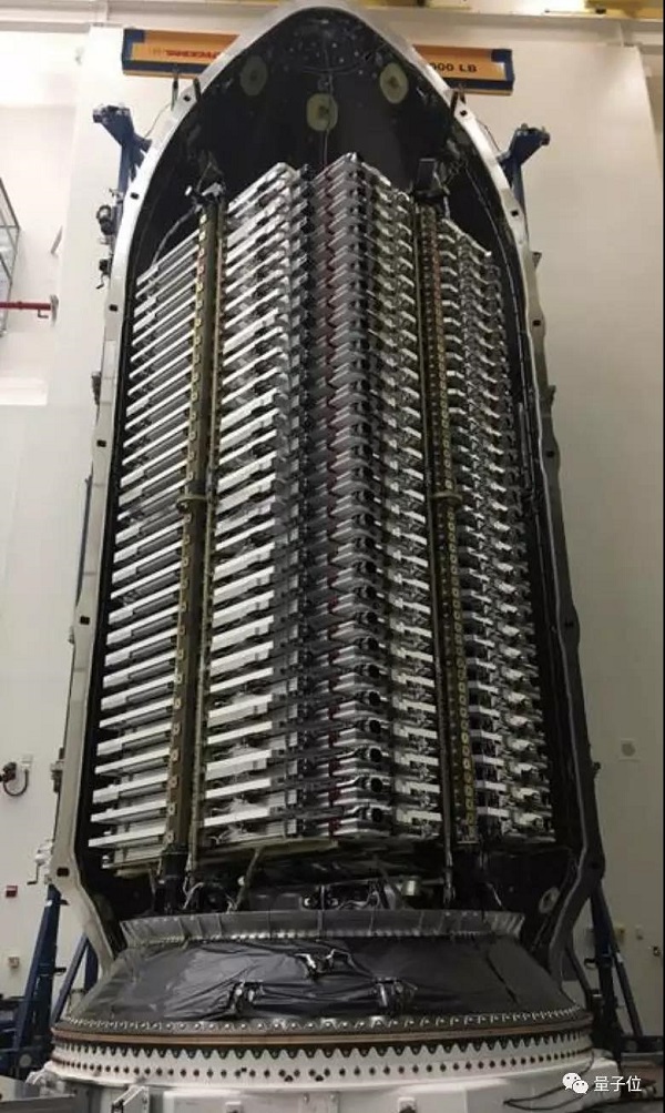 发射的方式很特别,是将60颗卫星装在一个方形卫星分配器上,然后装入猎鹰整流罩。每颗卫星超过200公斤,60颗总重量超过13吨,超过了SpaceX的发射记录。