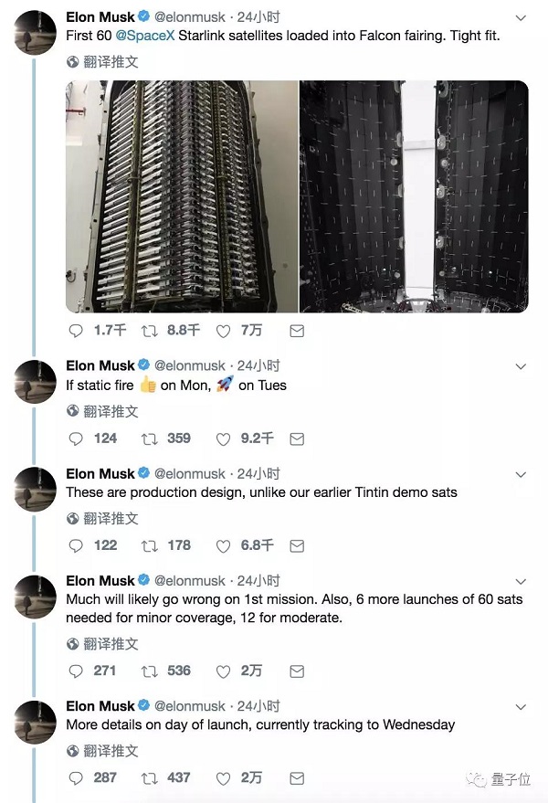 并且,和去年2月发射的两颗测试卫星Tintin A&B不同,这一批60颗卫星是正式的产品设计,也就是说,如果这批卫星发生成功,就意味着SpaceX的星链计划正式启动了。