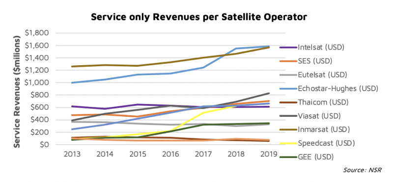 休斯、ViaSat和Inmarsat等综合运营商已设法在租赁和服务业务之间找到平衡。休斯、ViaSat和Inmarsat报告服务收入同比平均增长9%,且主要受宽带和航空业务的推动。休斯出售了ESS部门,专注于宽带和网络业务。