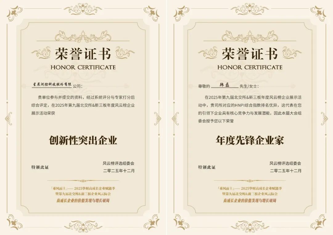 星展测控荣膺第九届北交所 & 新三板企业风云际会两项大奖
