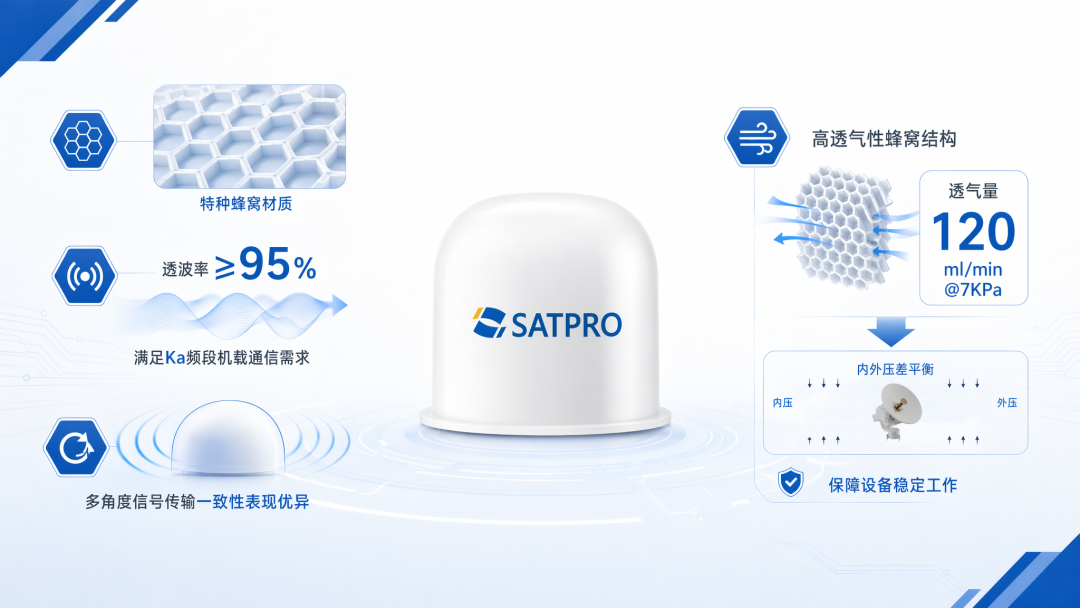 同时,罩体蜂窝结构具备高透气特性,透气量达到120ml/min@7KPa,可有效平衡高空低压环境下的内外压差,保障设备稳定工作。